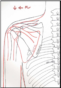 DSN의 압박, 손상으로 인한 익상견갑은 위 그림과 같이 나타난다.
