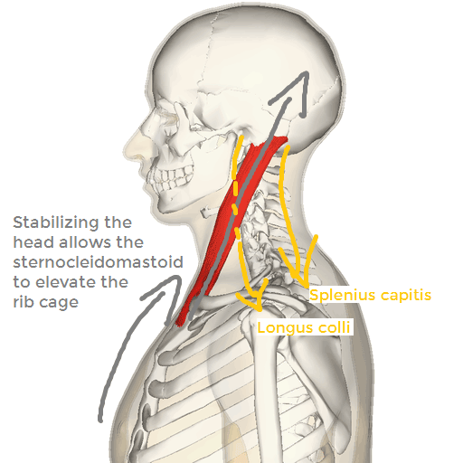 머리가 안정된 자세에서 SCM은 호흡을 보조하는 역할을 합니다.