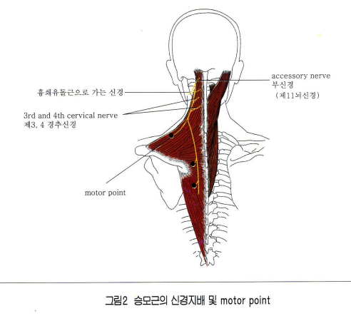 - SCM과 함께 accessory nerve의 신경지배를 받습니다.