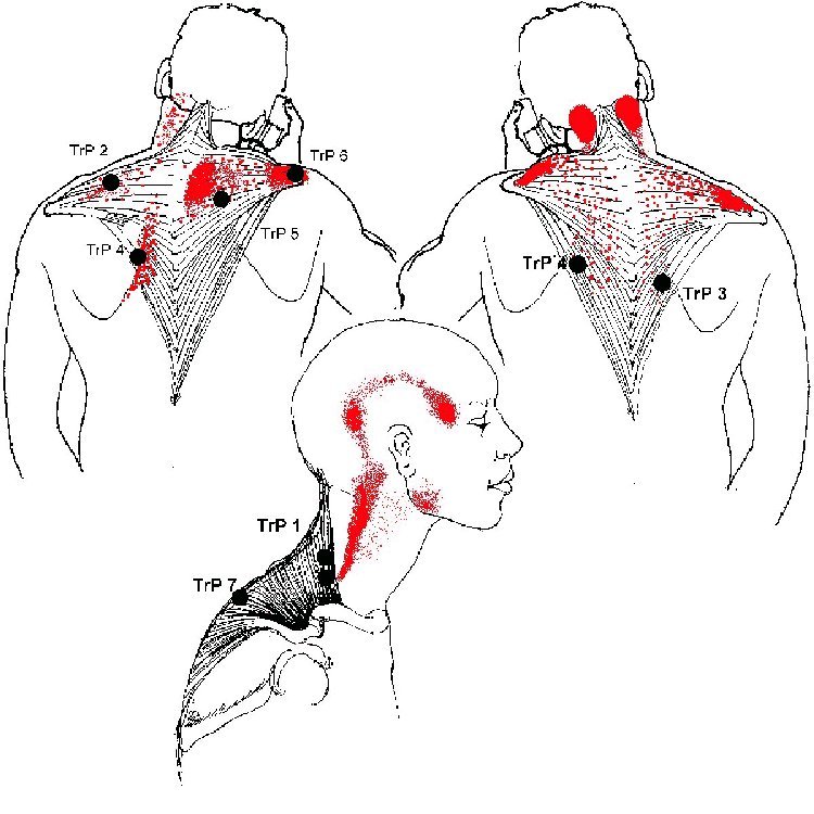 - TrP1, TrP2가 TrP3의 위성압통점으로 형성되는 경우도 있다.