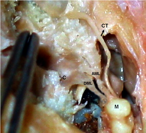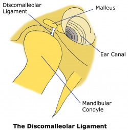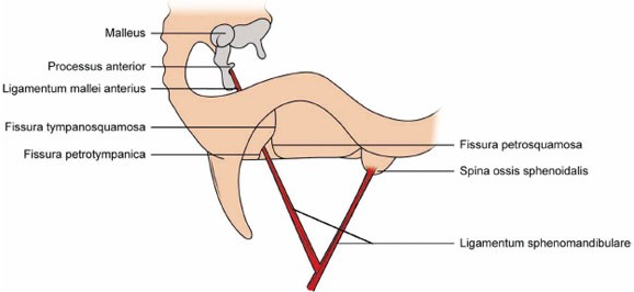 이소골의 하나인 malleolus와 연결되는 인대들이다. 턱관절(TMJ)의 장애와 이명과의 관계를 일부 설명해준다.