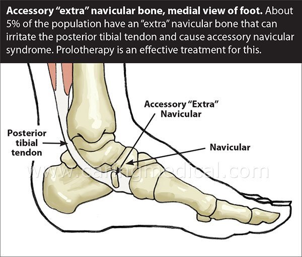 후경골근(tibialis posterior)의 건과 마찰이 되어 통증과 염증을 일으킬 수 있다. 후경골근 자체가 평발, 발의 pronation 패턴과 영향이 많기 때문에 평발과의 임상적 연관성이 있는 편이다. 따라서 부주상골이 있고 임상증상이 있는 경우 우선적으로 후경골근을 치료 목표로 잡아볼 수 있다.