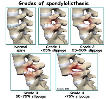 척추전방전위증(spondylolisthesis)은 대개 4단계로 나누어서 봅니다.