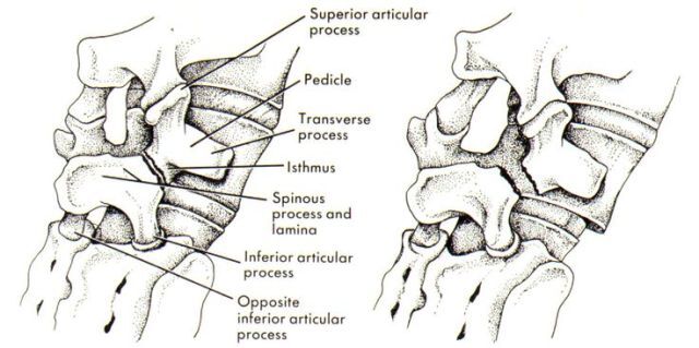 요추마다 멍멍이처럼 생긴 부위가 있는데요. 이 멍멍이의 목이 끊어지면(!) 척추 분리증으로 진단하게 됩니다.