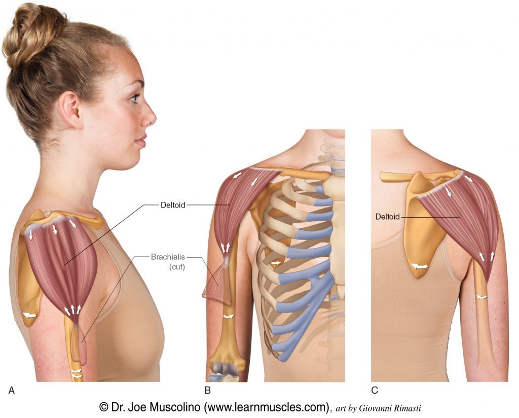 | 기시점(origin) | the anterior border and upper surface of the lateral third of the clavicle, acromion, spine of the scapula |