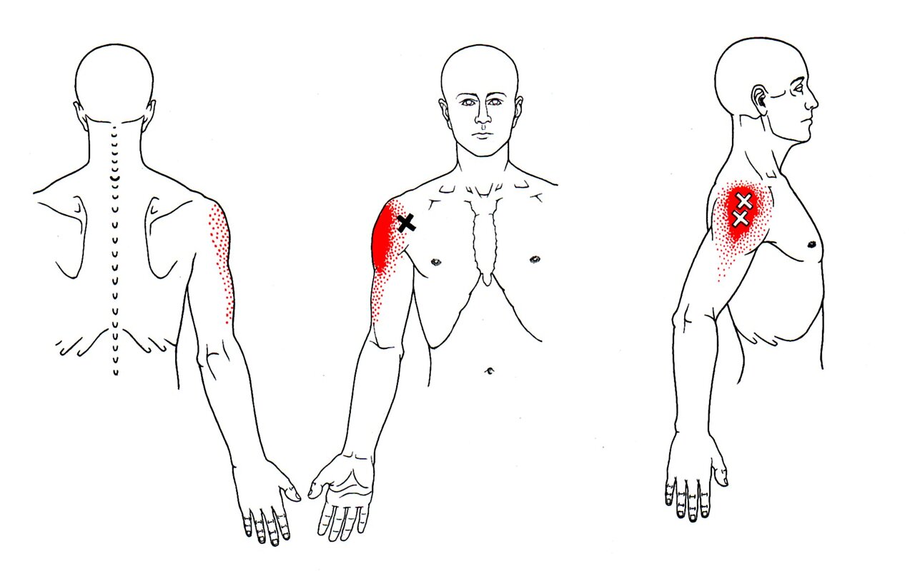 - 어깨의 근처로 통증을 방사할 수 있다. 먼 부위까지 통증을 방사시키지는 않는다.
