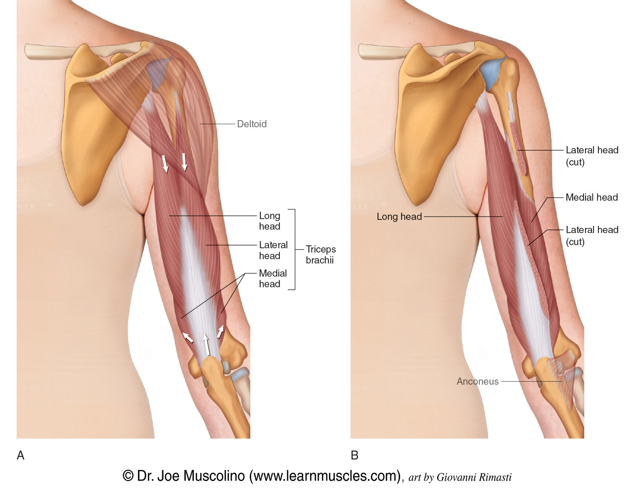 | 기시점(origin) | Long head: infraglenoid tubercle of scapula Lateral head: above the radial groove Medial head: below the radial groove |