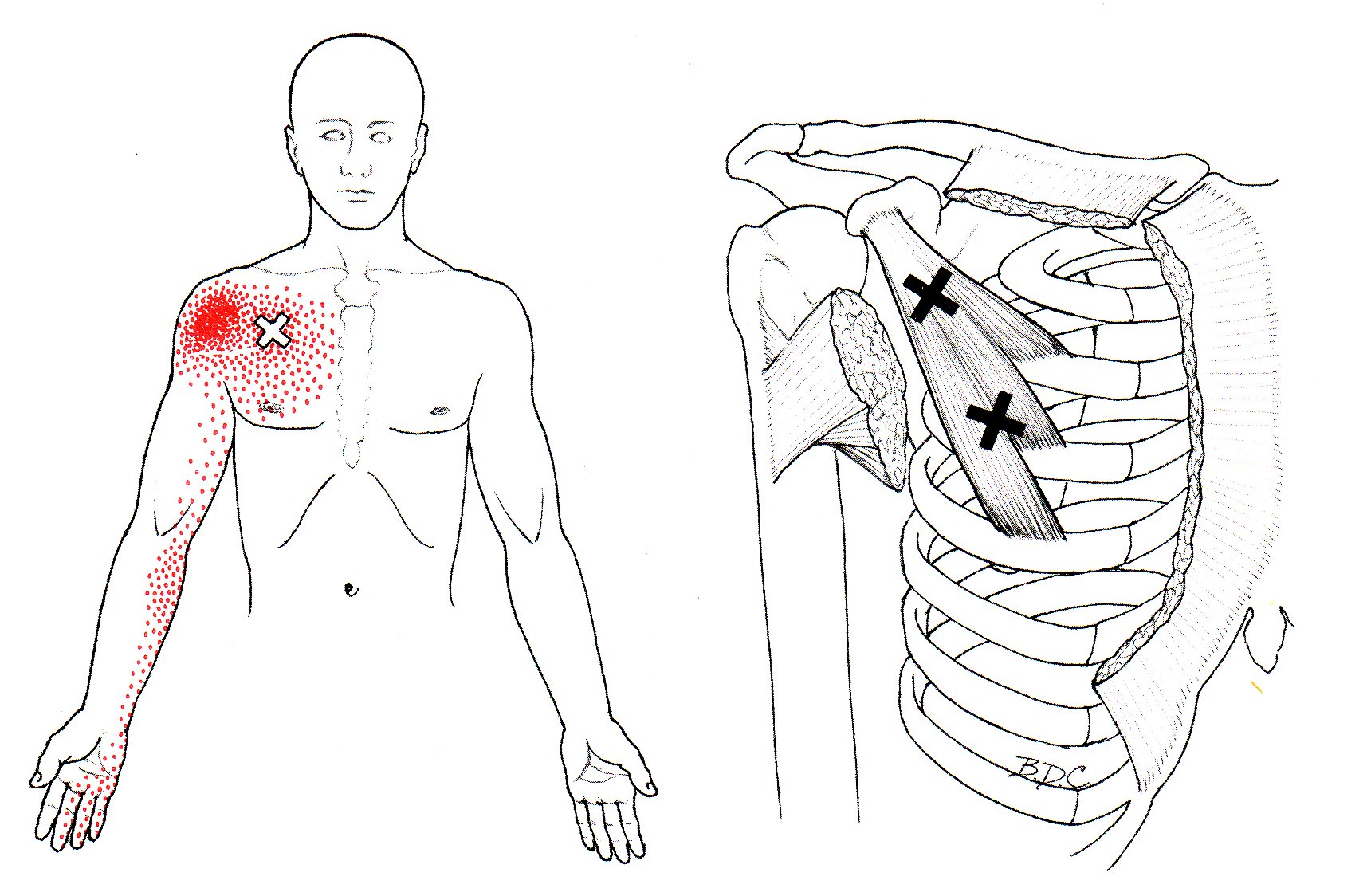 | 기시점(origin) | Third to fifth ribs, near the costochondral junction |