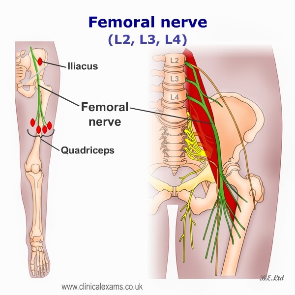 대퇴신경이란 요추 2,3,4번의 분지로 샅부위를 통과하여 허벅지의 감각과 근육을 담당하는 신경입니다.
