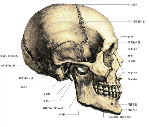 - 두개골의 관절 움직임 (suture)