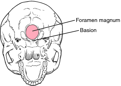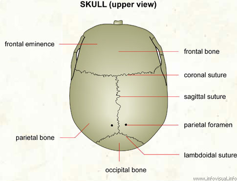 | Superior aspect of skull | Coronal suture - between the frontal bone and the parietal bone Bregma - convergence of the saggital and coronal sutures |